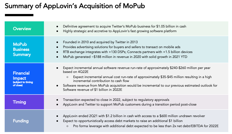AppLovin launched a powerful in-app bidding platform calledĀ MAXĀ in 2018. In 2021, it acquiredĀ Adjust, a leading mobile measurement partner (MMP), further strengthening its ad tech offering. The same year, AppLovin acquiredĀ MoPubĀ from Twitter to consolidate its dominance in the mediation market. This acquisition provided a vast trove of data on ad network bidding behavior in a post-IDFA world (after Appleās privacy changes).
