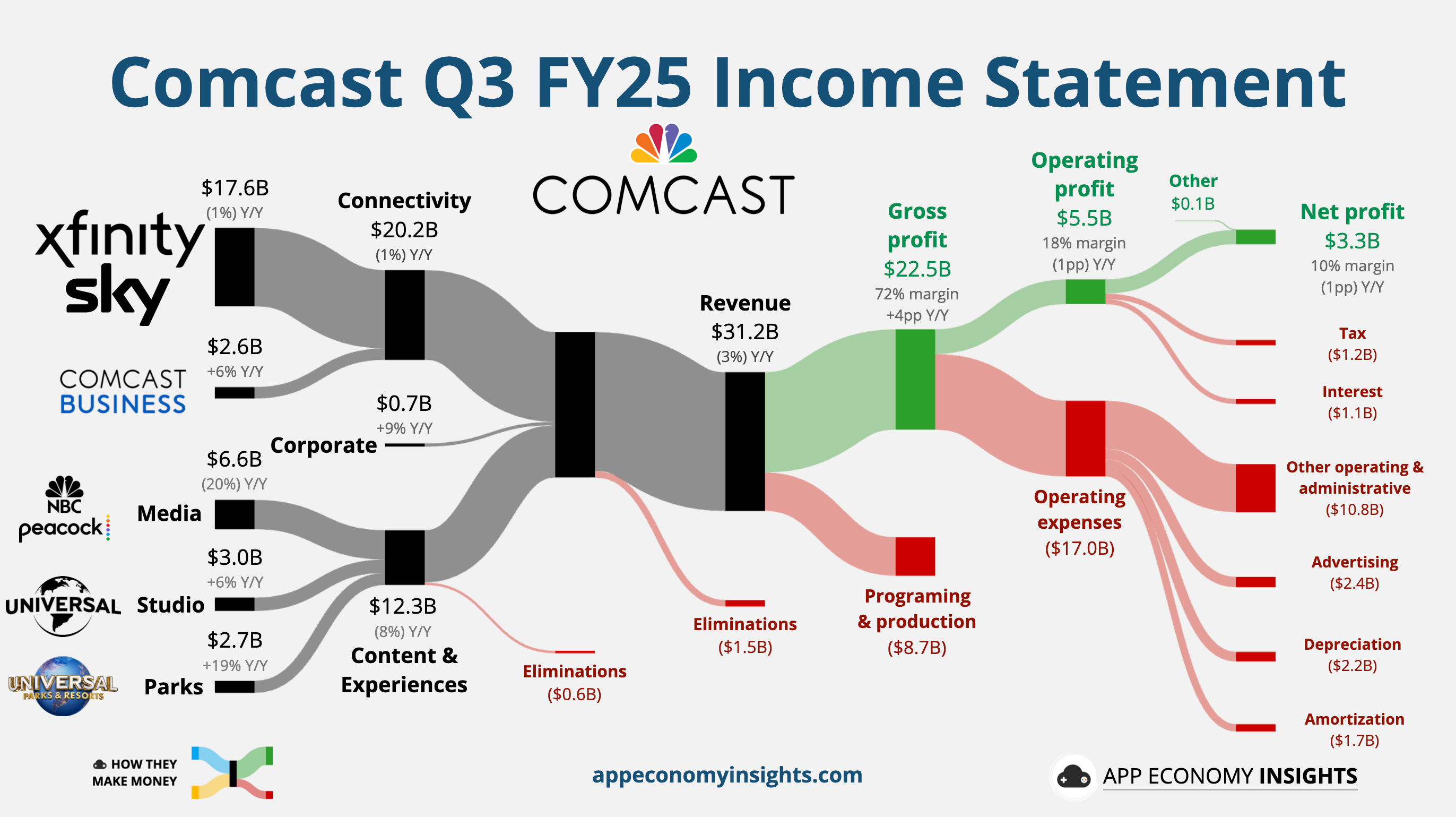 đ„ Studio boosted by Dinos: Universal Studios revenue rose 6% to $3.0 billion, driven by the strong theatrical run of Jurassic World: Rebirth (which grossed nearly $900 million global box office) and higher content licensing. However, Studioâs EBITDA fell 22% to $365 million due to higher marketing and production costs for its upcoming slate.