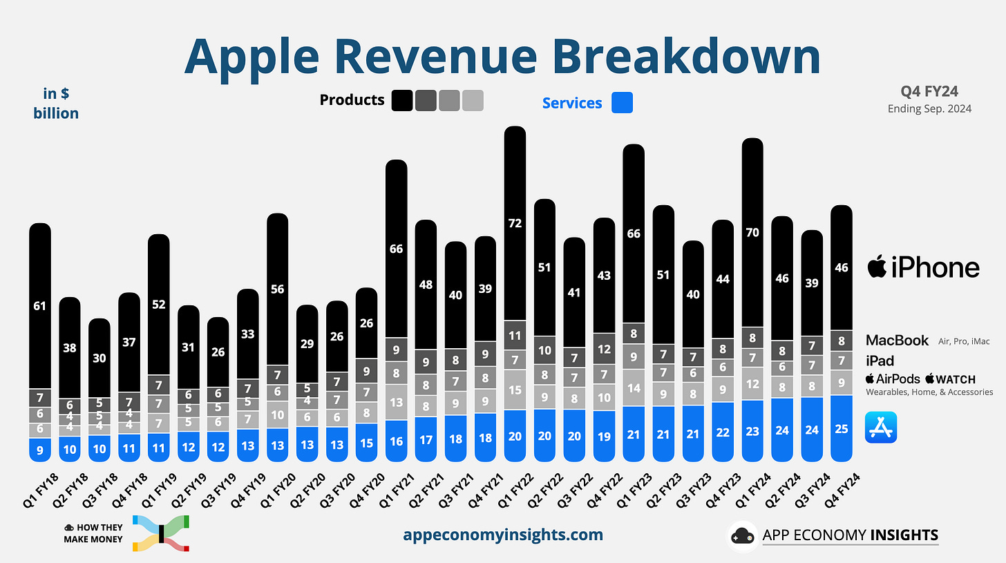 Revenue mix: Start by breaking down the companyâs revenue streams. Does the business rely on a single product or service, or is it diversified across multiple offerings and geographies? For example, Apple generates revenue from products (phones, tablets, computers, wearables) and services (software, traffic acquisition, payment fees). A diversified revenue mix often means more stability, while dependency on one source could be a red flag. High customer concentration can indicate a higher risk of disruption if the market turns.