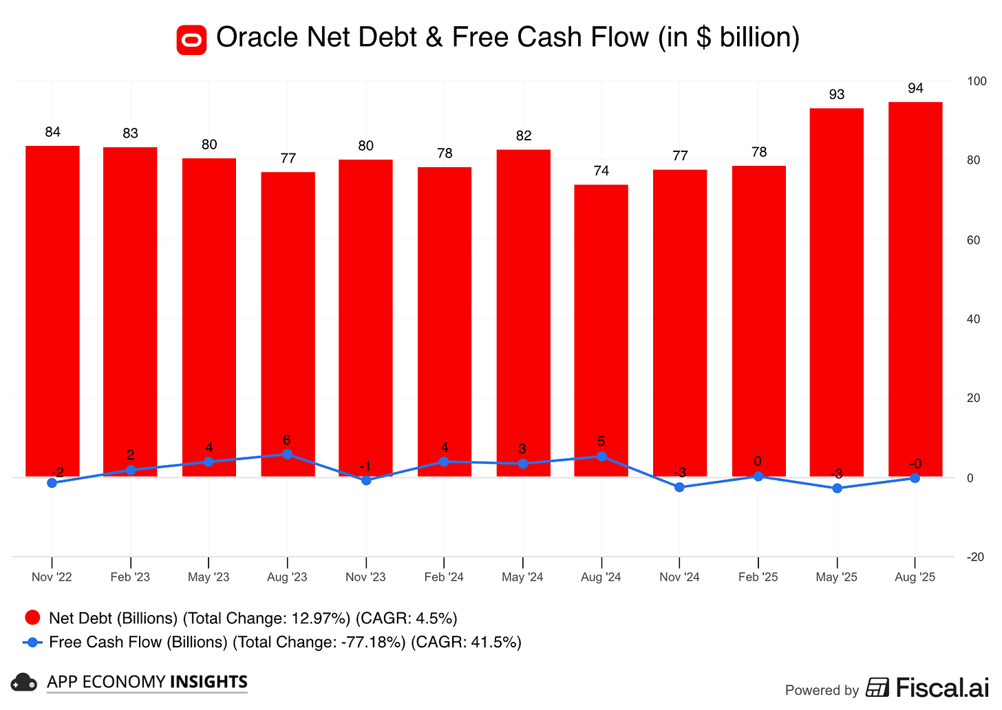 Oracle is not like the rest of Big Tech. It’s investing ahead of hypothetical revenue. Unlike hyperscalers with massive existing free cash flow funding their AI buildouts, Oracle is leveraging up to finance a rapid global expansion of data centers.