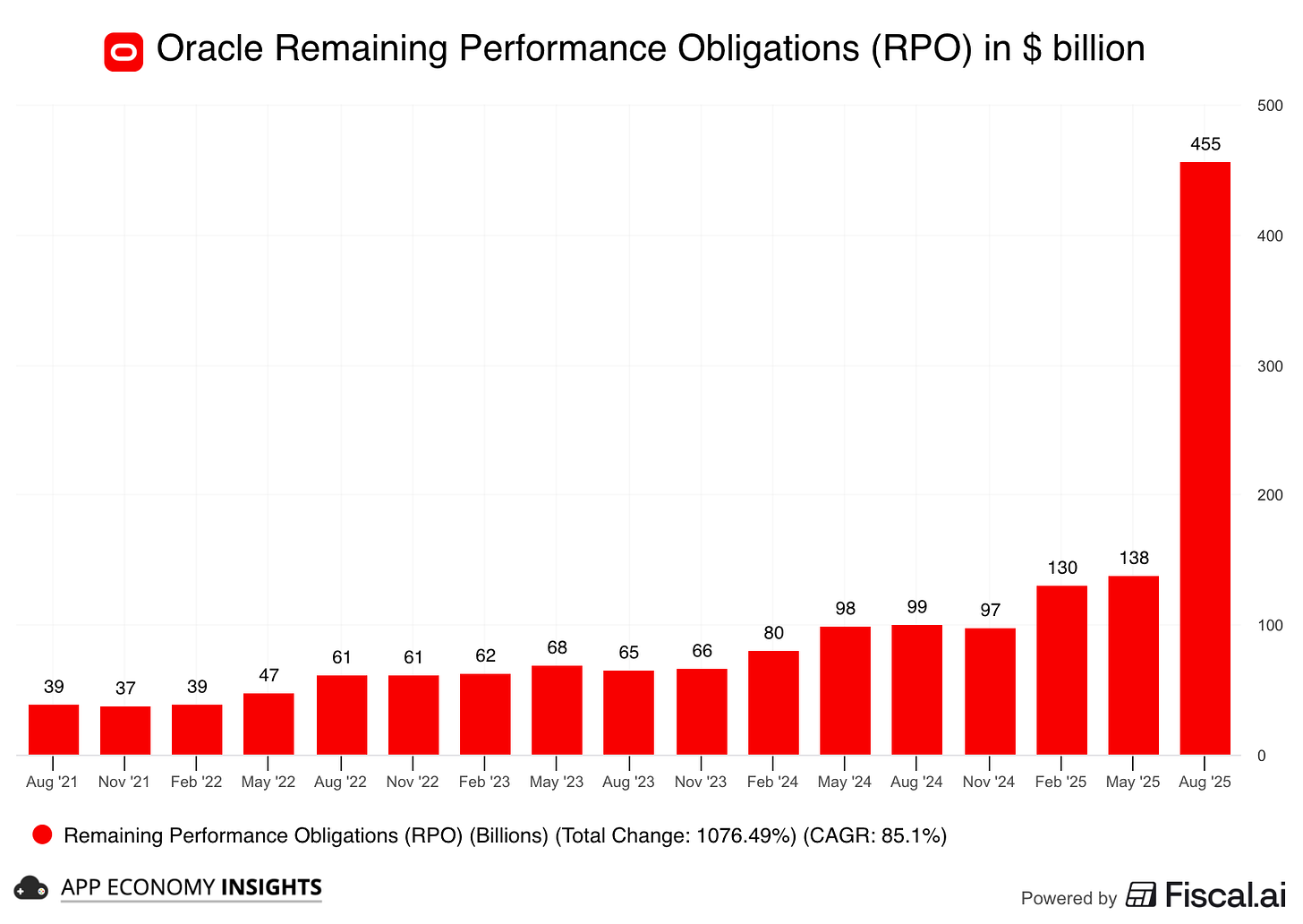 Oracle’s latest quarter showed a stunning $455 billion in remaining performance obligations (RPO). Management tied hundreds of billions of that to long-term AI cloud deals, with OpenAI front and center.