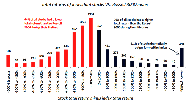 6% of stocks dramatically outperformed the index (by 500% or more).