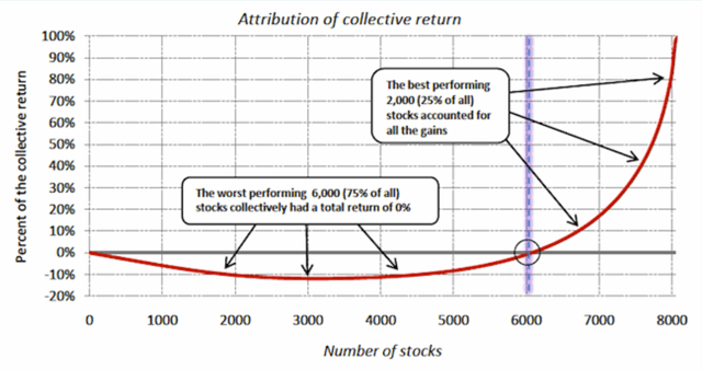 Their findings? A mere 25% of stocks accounted for all the gains.