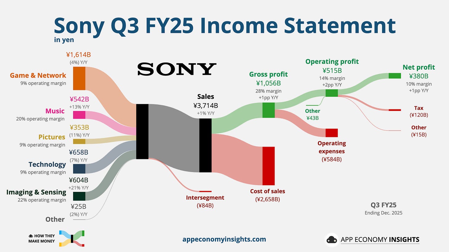 🔮 Looking forward: Sony raised its full-year operating profit forecast by 8% to ¥1.54 trillion (¥0.11 billion raise). The company may be moving fewer hardware units, but the unit economics are better than ever.