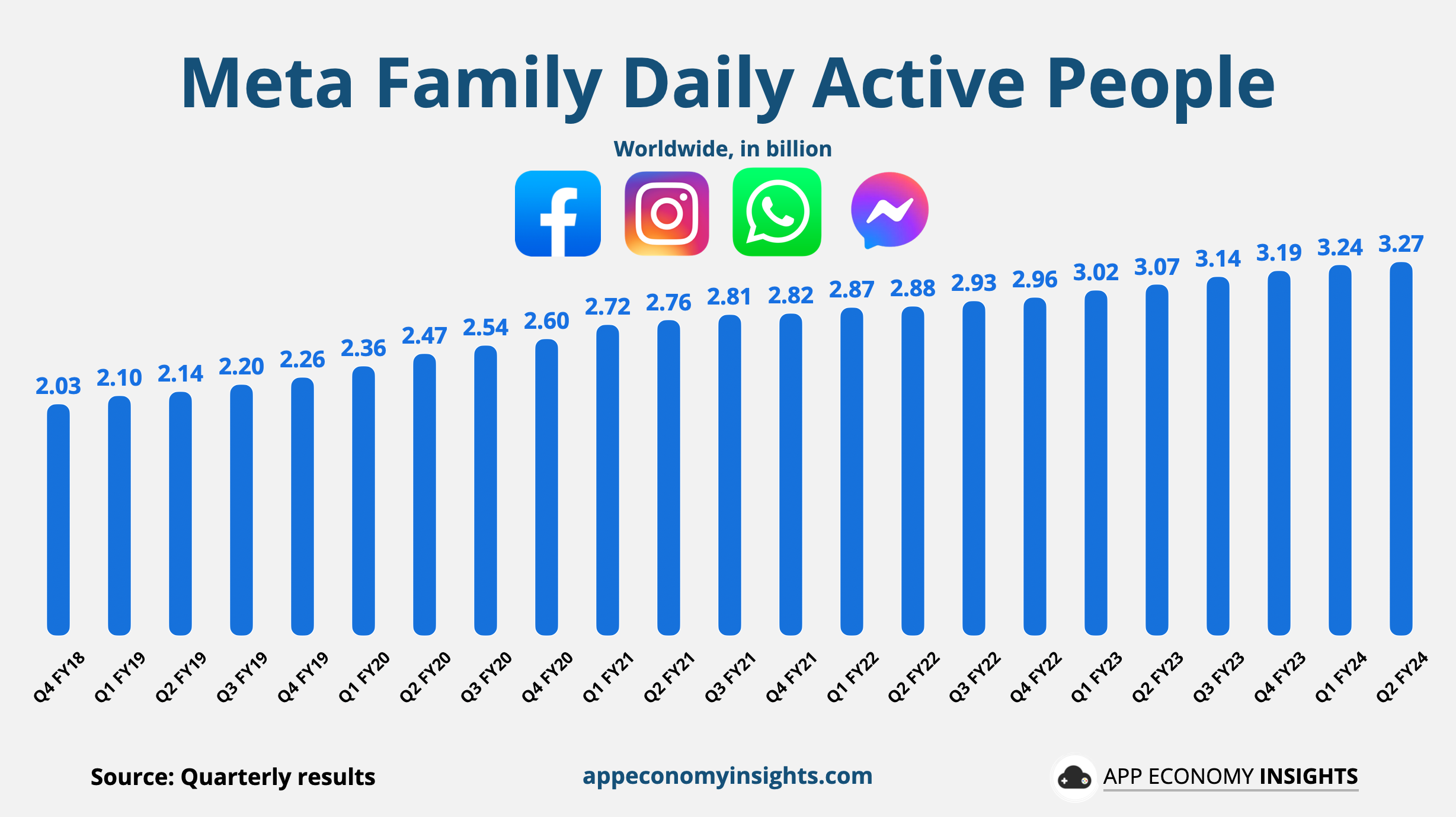 FoA Daily Active People grew +7% year-over-year to 3.27 billion.