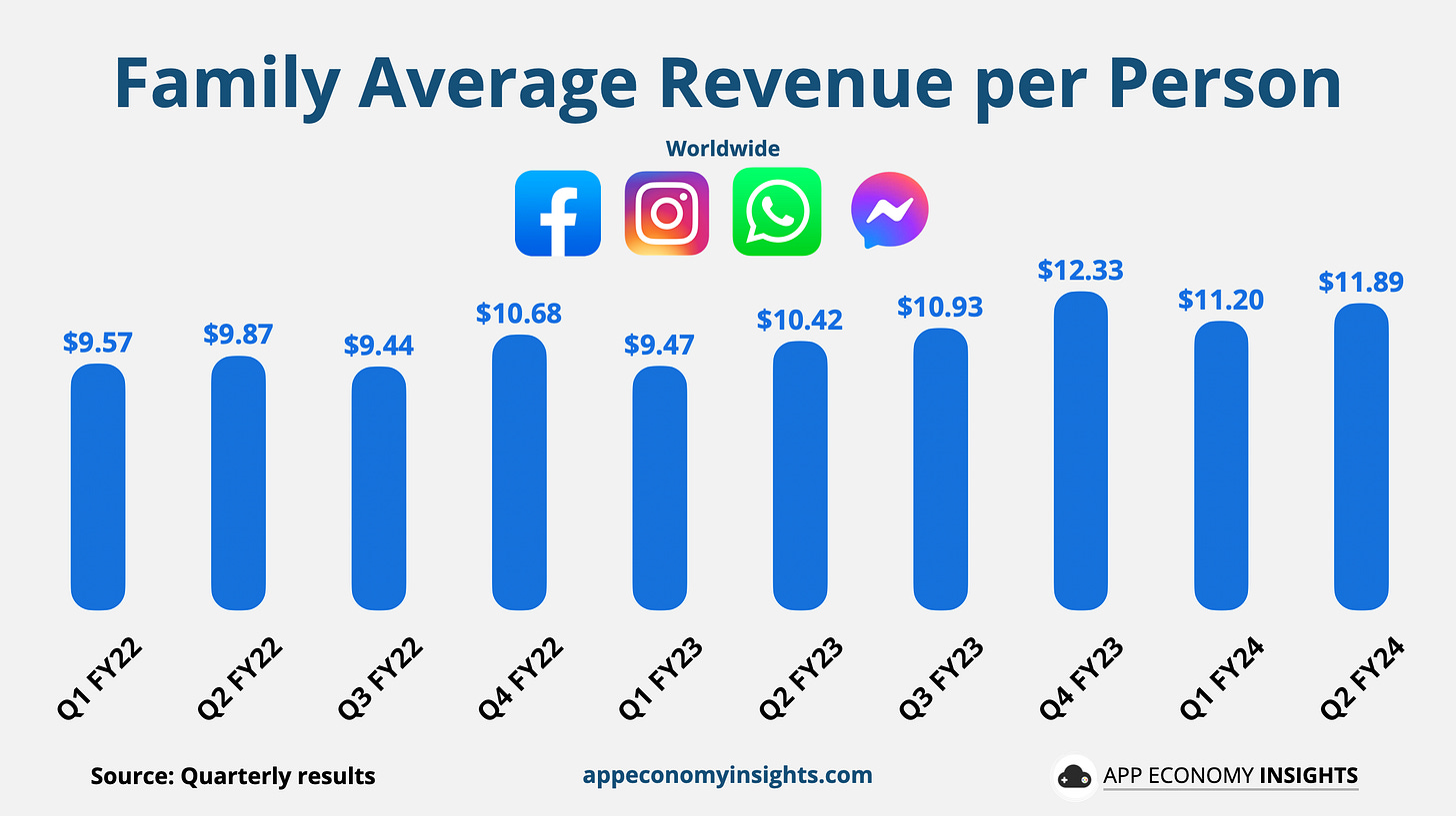 The average revenue per person grew +14% Y/Y to $11.89.