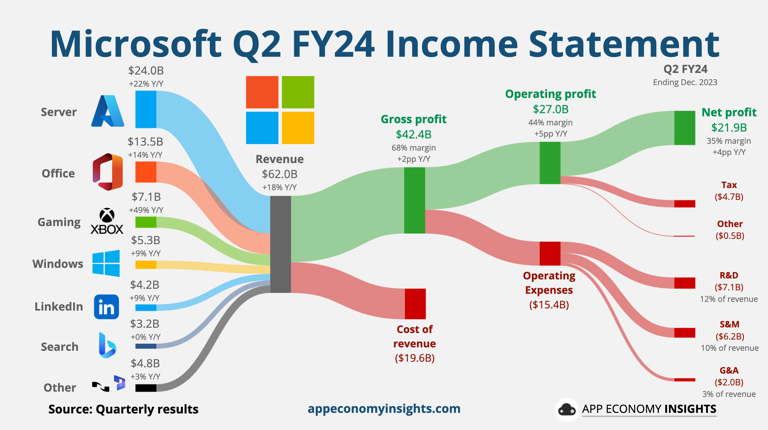 Microsoft (MSFT) released its Q2 FY24 report (ending December 2023).