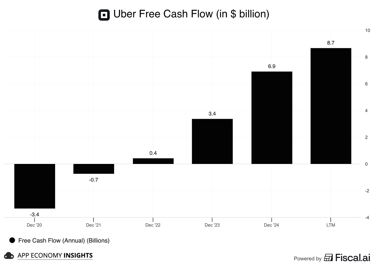 The market doesnât think so. Uber trades at roughly 22x trailing free cash flow, a metric that has tripled in the past two years.