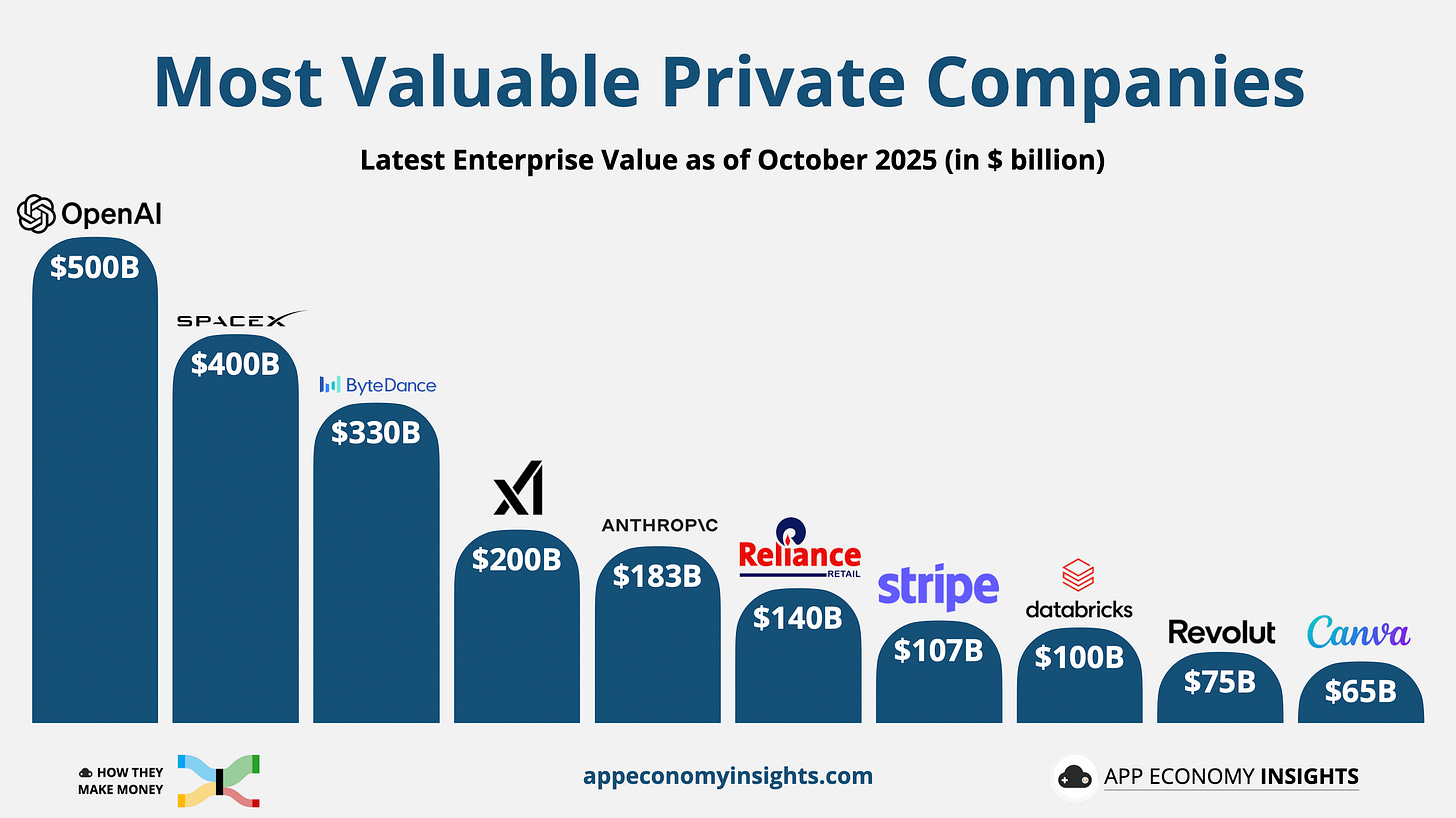 That makes it the world’s most valuable private company, far ahead of Elon Musk’s SpaceX and TikTok’s parent ByteDance (as of October 2025).