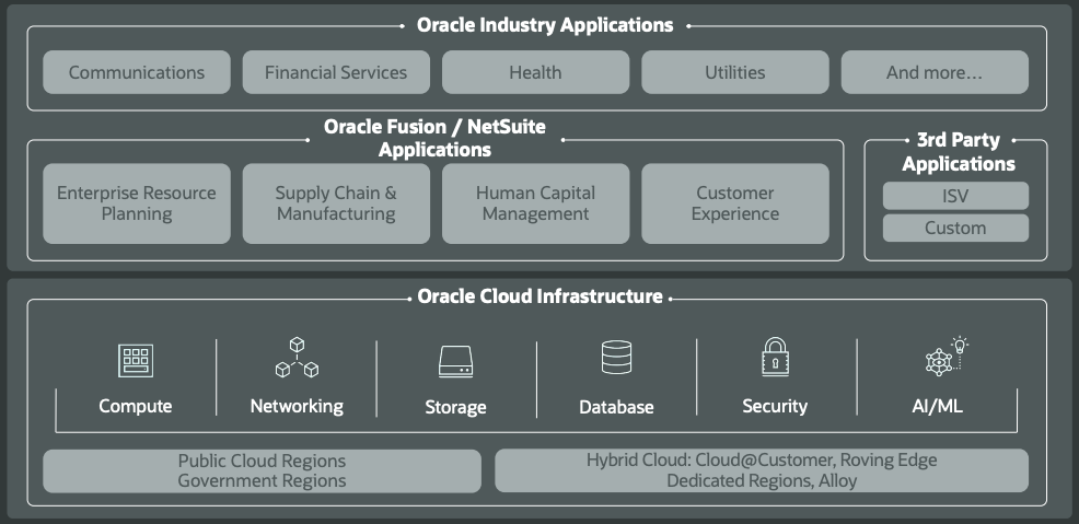 📊 Fusion / NetSuite Applications: Core cloud-based enterprise resource planning (ERP), supply chain, human capital management (HCM), and customer experience applications.