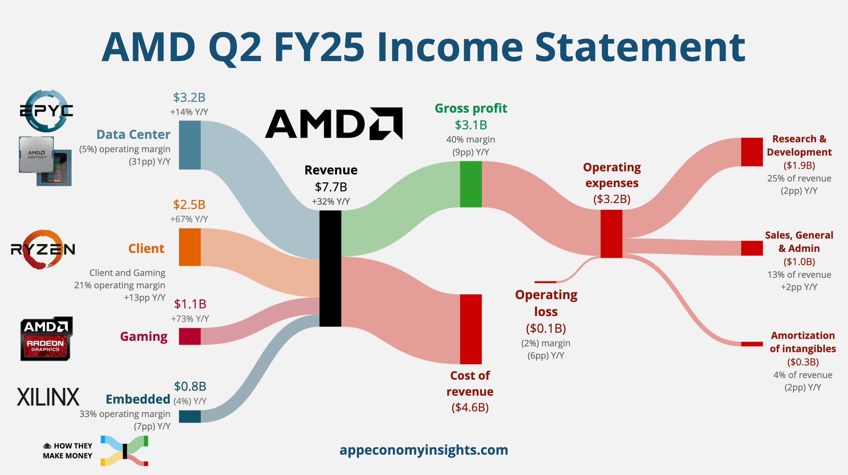 AMD’s revenue climbed 32% Y/Y to $7.69 billion ($260 million beat), while adjusted EPS of $0.48 was in line.
