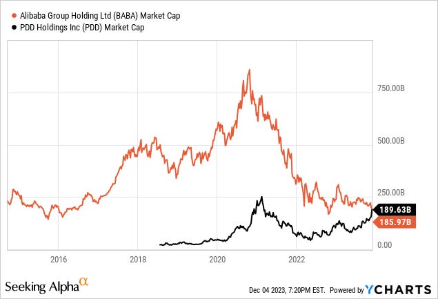 Pinduoduo’s ascent relative to Alibaba’s collapse is nothing short of astonishing, particularly in the context of their IPOs: