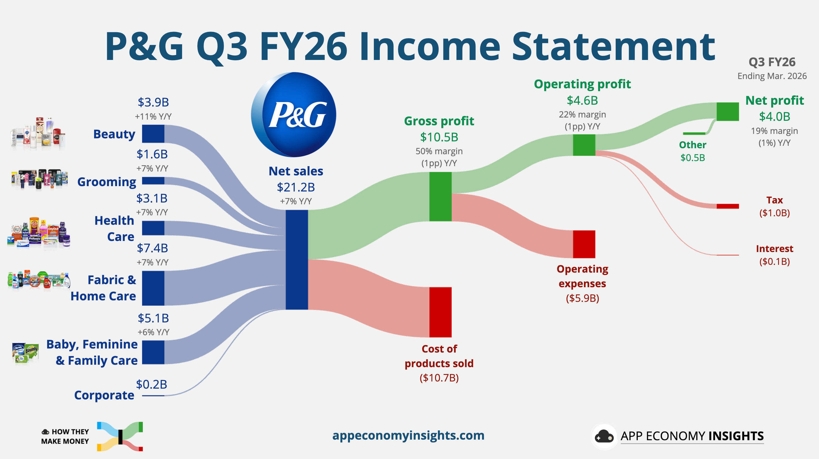 P&G rebounded in Q3 FY26, reporting revenue growth of 7% Y/Y to $21.2 billion ($720 million beat) and core EPS of $1.59 ($0.03 beat). Organic sales growth slightly rebounded to 3%, a recovery from the stagnation seen last quarter. Crucially, this growth was earned through a healthy mix of a 2% increase in volume and 1% in pricing, signaling that consumers are responding well to P&G's strategy of pairing price hikes with meaningful product innovation.
