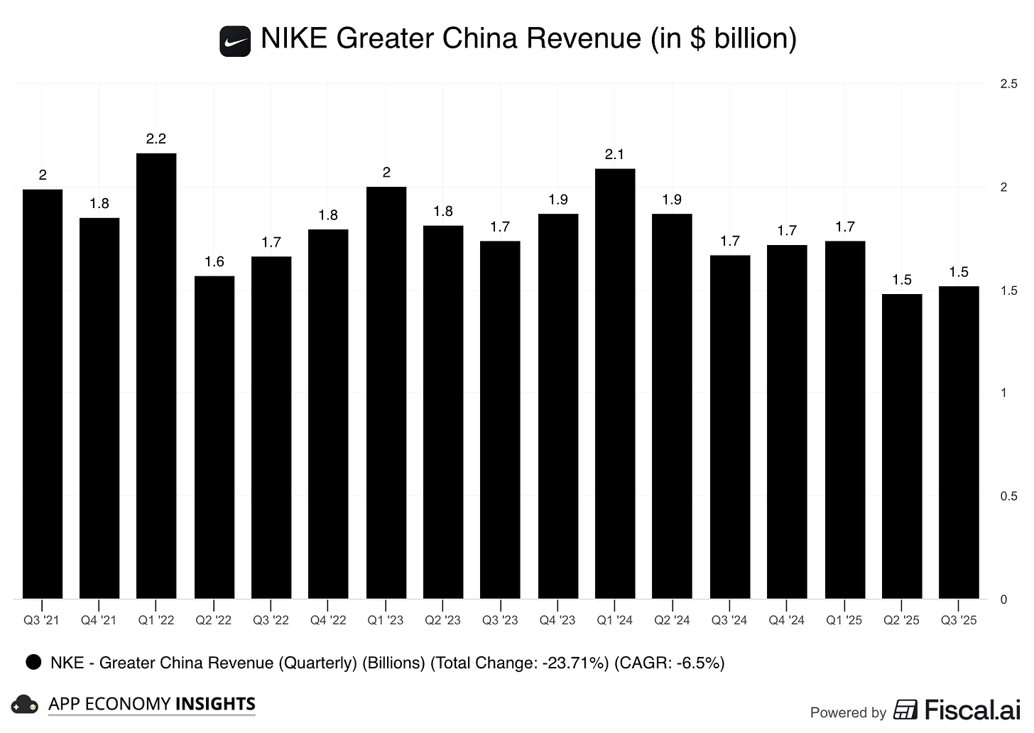 Greater China remains a major weak spot with sales falling another 9%, and the company does not expect its Nike Direct business to return to growth in FY26. Gross margin also dropped by 3 points to 42%, pressured by discounts and a worsening tariff situation, which is now expected to be a $1.5 billion annualized headwind.