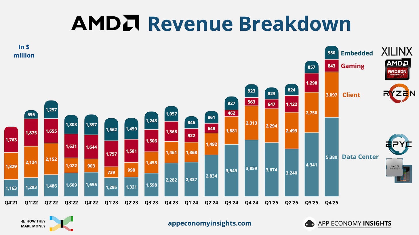 Client and Gaming revenue also impressed, growing a combined 39% Y/Y to $3.9 billion. Client revenue rose 34% to $3.1 billion, while Gaming revenue saw a surprising 50% surge to $843 million, driven by renewed demand for Radeon GPUs.