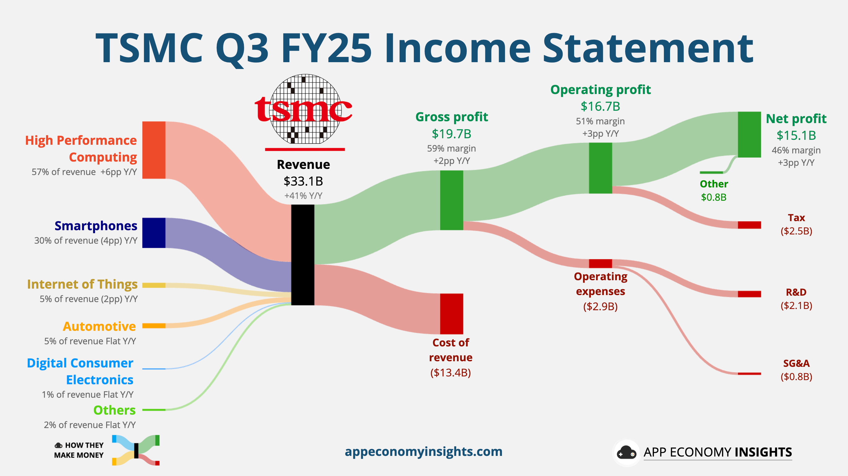 🗓️ Q4 outlook: Management expects $33.3 billion in revenue ($2.0 billion beat), with gross margins around 60%, supported by continued strong demand for leading-edge process tech.