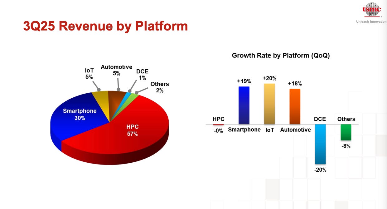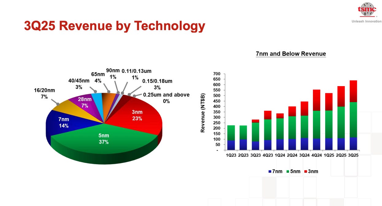 ⚙️ HPC still leads the charge: High-performance computing (AI + 5G) accounted for 57% of revenue. Advanced nodes (7nm and below) made up 74% of wafer revenue, with strong traction in 3nm and high utilization at 5nm.