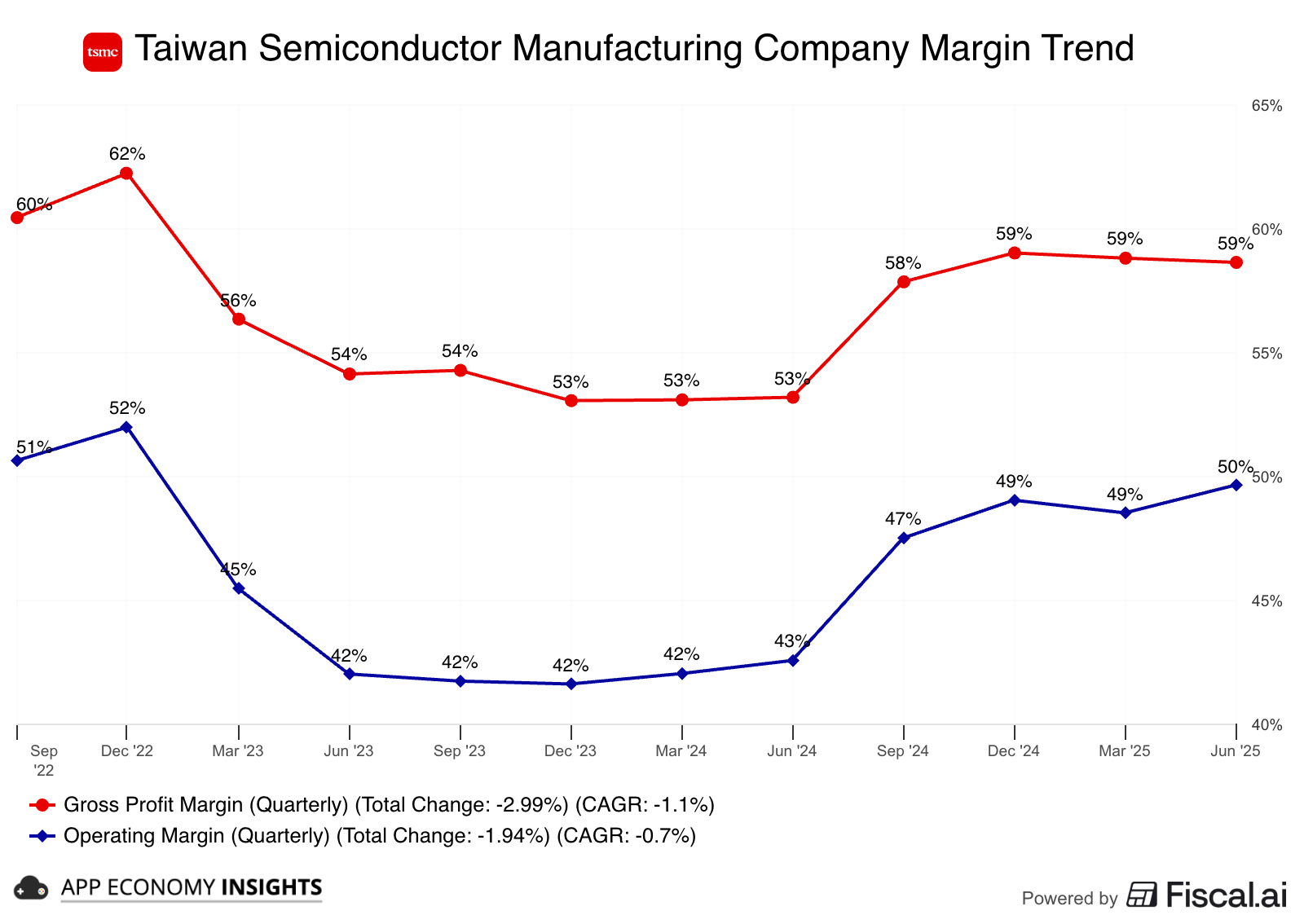 🔮 Guidance raised again: TSMC now expects mid-30% revenue growth in 2025 (local currency), up from ~30% previously. It’s the second upgrade in three months, signaling deep confidence in AI’s momentum.