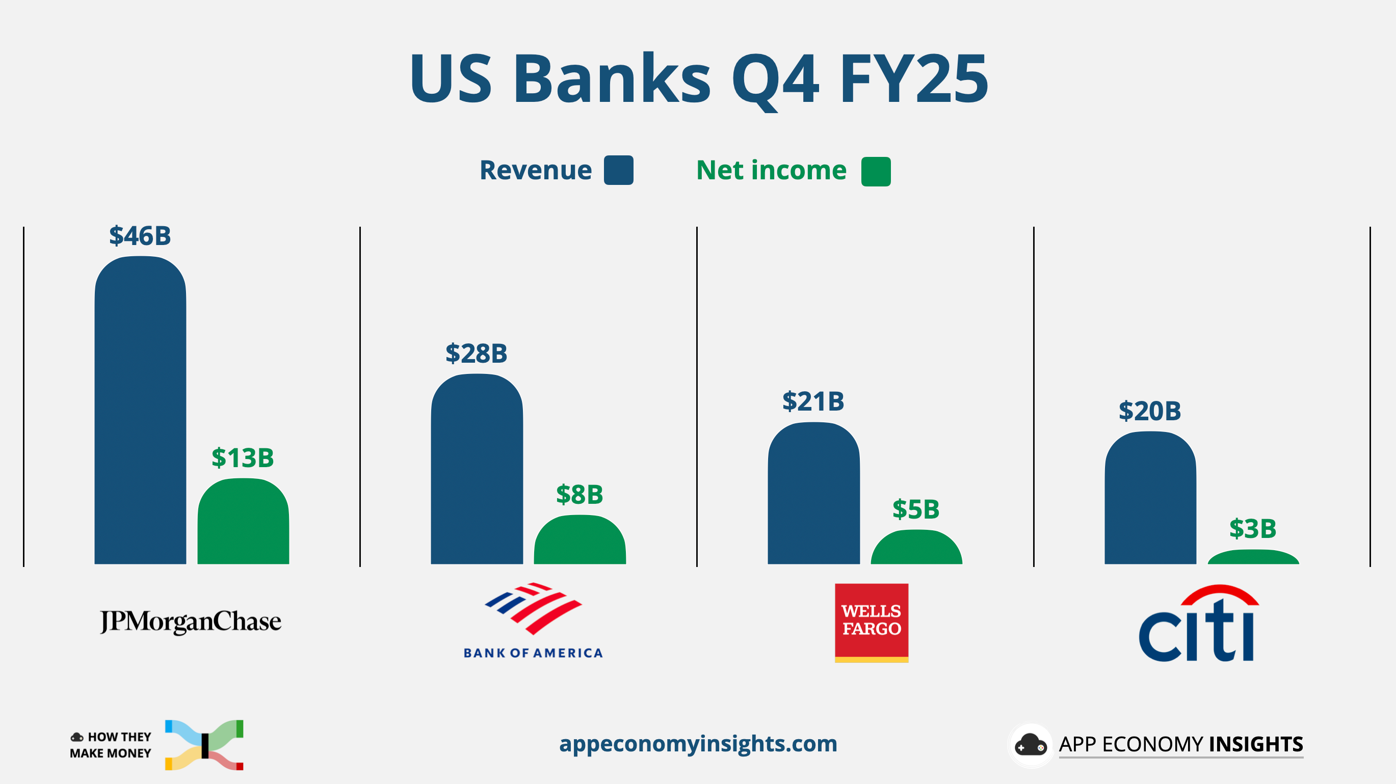 💸 Expense strategies diverge: The sector is splitting on costs. JPMorgan stunned Wall Street with a massive $105 billion spending plan to widen its moat. In contrast, Citi and Wells Fargo are still in “cutting mode,” shedding thousands of jobs and taking severance charges to protect margins.